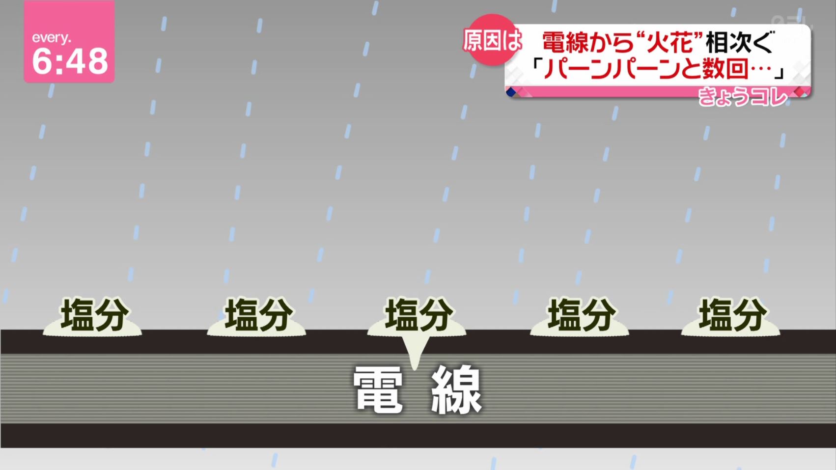 沖縄の沿線で送電線から火花って無い等しい。塩害が日常茶飯事だから。